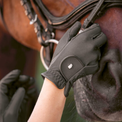 A menudo imitado, pero nunca igualado: el ROECK-GRIP desarrollado por ROECKL es el original inconfundible. De hecho, su singularidad es claramente tangible. Como suele suceder, son los detalles y, sobre todo, los materiales los que marcan la diferencia. ROECK-GRIP es un material exclusivo. Es extremadamente transpirable, elástico y flexible. En resumen: se adapta como una segunda piel. Al mismo tiempo, garantiza un excelente agarre y tacto al manejar las riendas. Para garantizar el ajuste ideal, ROECKL utiliza tallas de guantes francesas clásicas. Los sastres de guantes con sede en Múnich también dan gran importancia a la calidad de fabricación: las piezas individuales se cosen meticulosamente a mano. Las tolerancias de costura de 1 milímetro como máximo son solo un criterio de calidad tangible, porque la comodidad no se puede medir. El secreto está en los cortes y las proporciones. En este sentido, ROECKL se apoya en más de 180 años de experiencia en el arte de la confección de guantes. Cómodo: el ROECK-GRIP se puede lavar a máquina a 30 °C (86 °F). El cierre característico con el logotipo de la mano estilizada fija el guante de forma fiable alrededor de la muñeca. No contiene cuero.