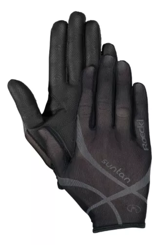 Ligero y aireado para el verano: ¡LAILA lo tiene todo! ROECKL SPORTS combina una malla fina y bronceadora en el dorso de la mano con una palma de MICRO-AIR altamente transpirable para este guante de equitación veraniego. Gracias a su microperforación, este material exclusivo es especialmente permeable al aire, lo que lo hace ideal para temperaturas cálidas. LAILA es un guante de equitación que a pesar de ser ligero y aireado se adapta como una segunda piel y garantiza un agarre fiable, así como una gran sensibilidad táctil en las riendas. Ventaja: el dorso de la mano suntan™ combinado con el cierre en la palma garantiza que el dorso de las manos esté uniformemente bronceado. La función TOUCHSCREEN COMPATIBLE permite utilizar el smartphone sin tener que quitarse los guantes. No contiene cuero.
