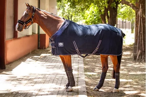 Útil para los viajes, útil durante los viajes, después del baño o del ejercicio, la manta polar es un artículo versátil e imprescindible para el caballo. Liviana y transpirable. Regula la temperatura. Elimina el exceso de humedad del cuerpo para evitar el enfriamiento. Atrapa el aire para crear un microclima confortable. De fácil mantenimiento. Dobles hebillas en el pecho, cinchas cruzadas ajustables y binding en todo su contorno. Lavable en máquina. Collar de refuerzo para evitar roces y lastimaduras