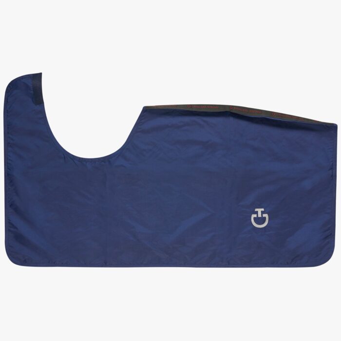 Esta manta de ejercicio está hecha de material ligero, transpirable e impermeable que protege al caballo del viento, la lluvia y el frío, manteniéndolo en la temperatura ideal. Es ideal para entrenar, calentar o después de las competiciones. Cuenta con un espacio para la silla que permite que la pierna del jinete trabaje eficazmente y un cierre de velcro. La manta luce un logotipo bordado en el lado izquierdo